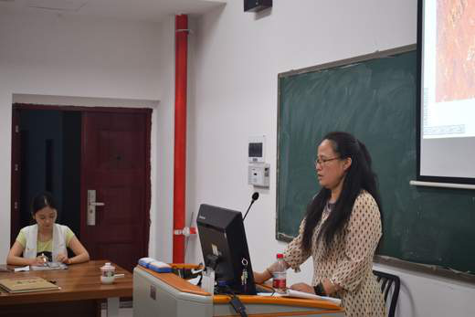 2017年7月1日上午,我们有幸邀请到广西工艺美术研究所副所长、高级工程师沈蓓女士来我院为国家艺术基金项目学员们举办《织锦图案的传承与创新》专题讲座,40名学员们不惧暴雨准时来到松雅校区美术楼401教室聆听讲座。