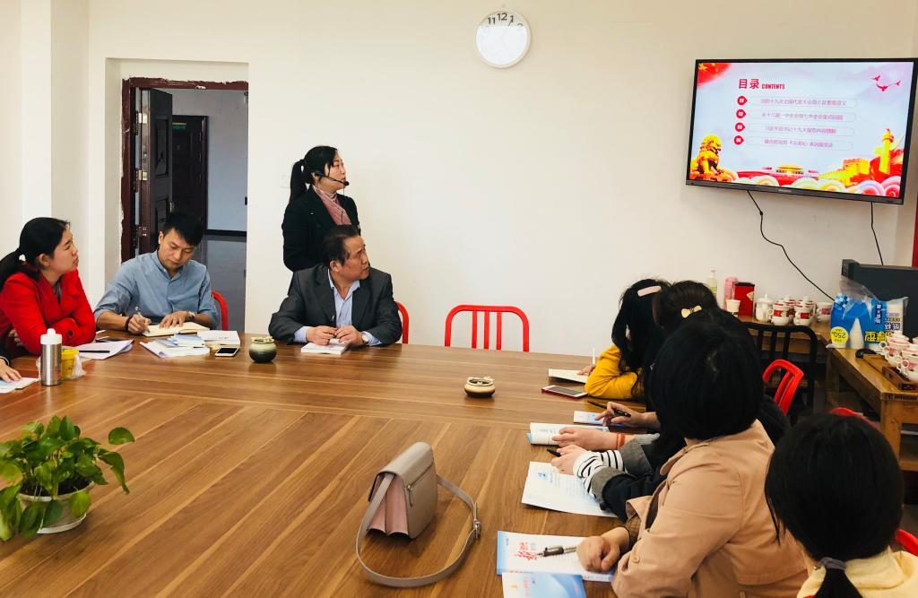 首先由支部书记邹德强带领大家重温了十九大报告的十三个内容要点,强调了“四个意识”和“八个明确”。随后支部宣传委员周艳给同志们上了一堂生动的党课,让全体党员同志进一步深刻认识党的十九大的伟大意义。