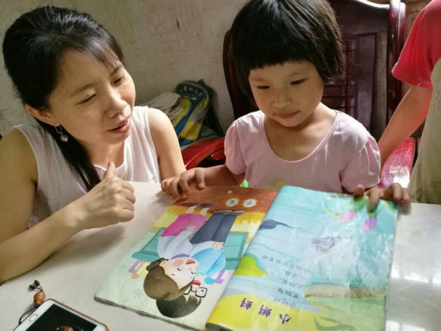 三个半小时的行程,这是何进夫妇第三次来到这个特殊的家庭了。虽是临时才得知夫妇俩即将到来的消息,但几个孩子早已在家门前等候。何进夫妇一进家门,孩子们便热情地搬凳子请他们坐,开心地品尝夫妇俩给她们带来的喜爱的食物。随后,大家一起看书、辨别色彩、讲故事、玩游戏,何进夫妇还教孩子许多生活常识,并一起共进午餐,房间充满孩子的欢声笑语。近四年来失去父爱母爱的孩子享受到亲人般的温暖,与夫妇俩亲密得像一家人,孩子们脸上绽放着灿烂无邪的笑容。