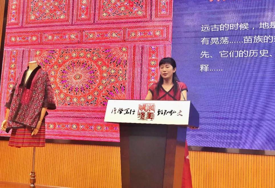 2018.9.15日下午2:30伟德国际victor1946美术系主任、周朝晖教授在湖南省图书馆开设了一堂意蕴生动的讲座——《苗衣绣艺(上)——穿在身上的史书(苗服)》,这个讲座也是省图书馆苗族风情月的系列讲座之一。