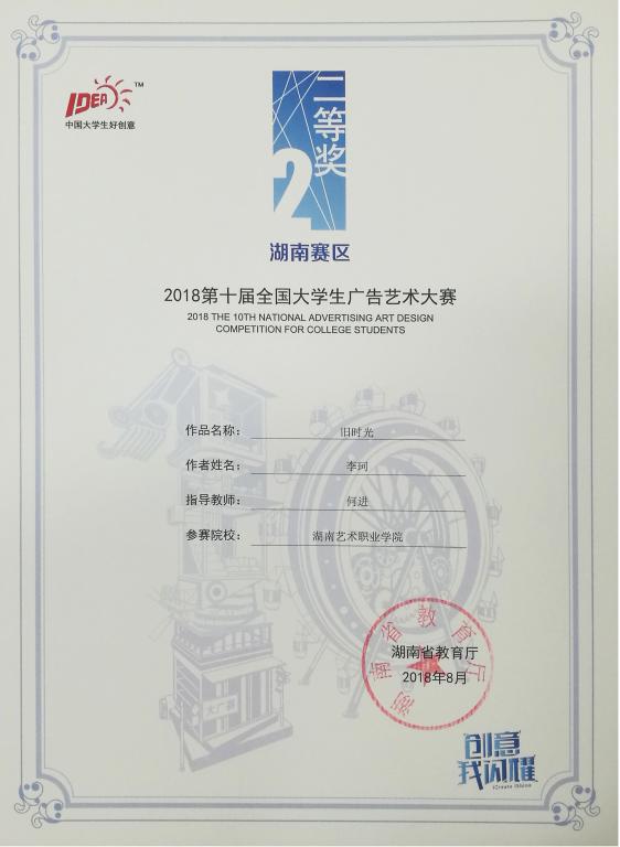 近日,第十届全国大学生广告艺术大赛评选结果公布,我系广告设计与制作教研室积极组织指导学生参赛,共4件平面作品获奖,其中一等奖1件,二等奖2件,优秀奖1件。广告设计与制作专业学生张修来和何晓江共同创作的作品《杜蕾斯进球系列》获湖南赛区一等奖和全国优秀奖,李珂创作的作品《旧时光》和周荐、谭练君创作的作品《善与美》分别获湖南赛区二等奖,谭卓创作的作品《潮色》获湖南赛区优秀奖,指导老师均为广告设计与制作专业何进副教授。同时,伟德国际victor1946与湖南师范大学、吉首大学、湖南理工学院、湖南城市学院、湖南大众传媒职业技术学院等六所院校获“优秀组织奖”。