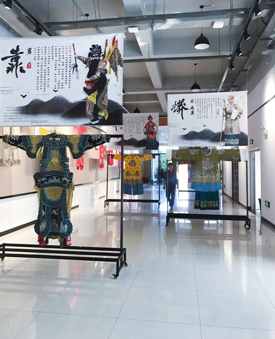 为提升和丰富此次培训,我们在美术楼一楼精心策划了一场戏曲服装展,共计展出了18套服装。如大衣箱放文职身份角色所穿服装,蟒、官衣、帔、褶子等;二衣箱放武职身份角色所穿服装,如靠、箭衣、抱衣等;三衣箱放鞋靴等。展览时间为:10月31日一11月9日。