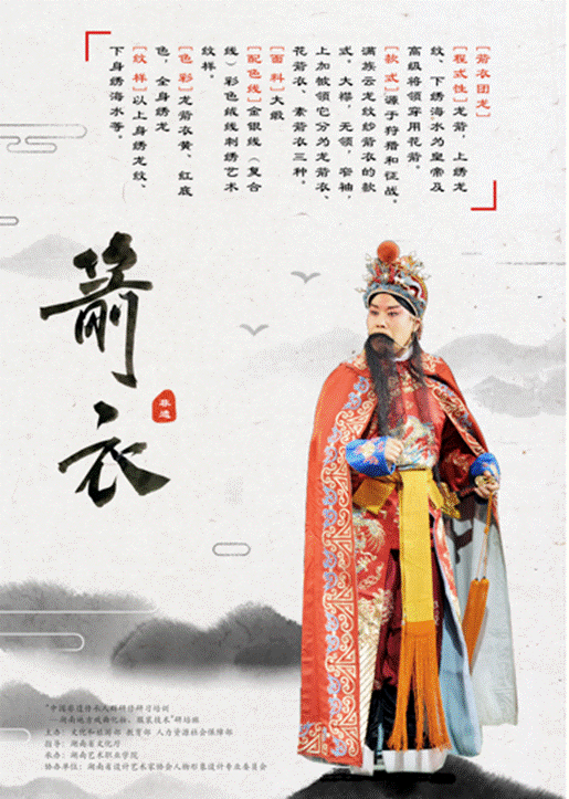 在款式上极具艺术观赏性。它应用中国民族特色的制作工艺,让戏曲服饰更具有独特性,并突出舞台整体效果。 如“靠”在演员做飞腾、旋转等武打动作时,“靠”的前后片能呈现眼花缭乱的动态美。此服装静则赋予人物以魁梧气质,动则便于体现八面威风之感。