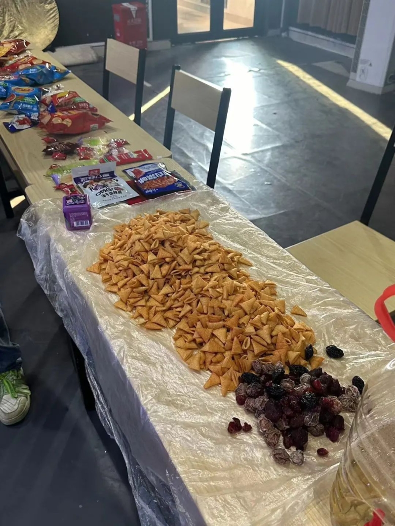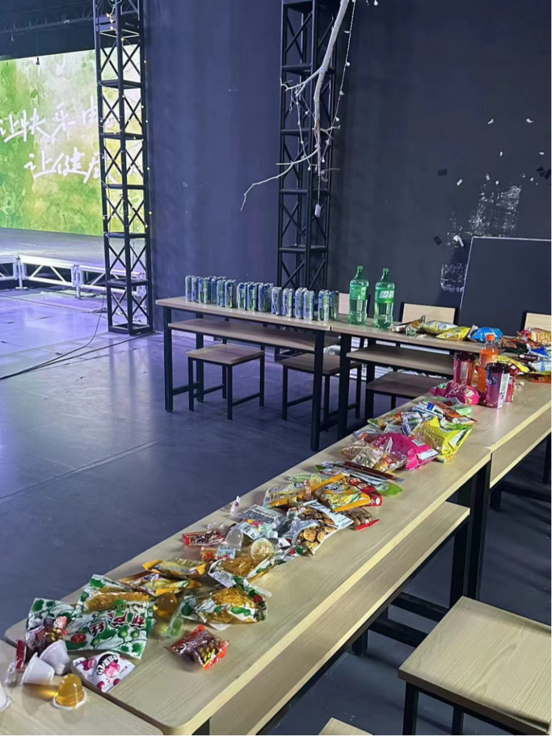 随着灯光的变换,一场精彩纷呈的晚会即将拉开帷幕。各样的才艺表演呈现眼前,歌声嘹亮、舞姿曼妙,每一个故事都仿佛诉说着内心的情感与故事;各类的零食饮料以及小礼品则让同学们在欣赏节目时增添了一丝享受,整个现场营造出了一种轻松愉悦的氛围,使得每一位同学都深深沉浸其中。