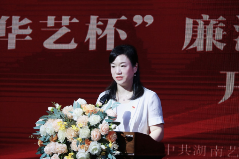 纪委书记屈智芳在致辞中强调了廉洁文化在校园建设中的重要作用。她表示,学校一直秉持“围绕舞台,造就人才;立足文旅,服务社会”的办学理念,致力于营造政治清明、作风清朗、氛围清雅的清廉校园。此次“华艺杯”廉洁文化艺术作品展,正是学校推动廉洁文化建设的重要举措之一,通过艺术的形式,让廉洁文化深入人心,助力构建良好的社会风尚。
