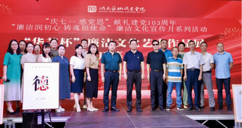 最后,周邦春校长宣布“庆七一 感党恩”为献礼建党103周年“廉洁润初心 铸魂担使命”廉洁文化宣传月系列活动暨“华艺杯”廉洁文化艺术作品展正式开幕。随后,各位领导和嘉宾一同参观了展览,对展出的师生作品给予了高度评价。