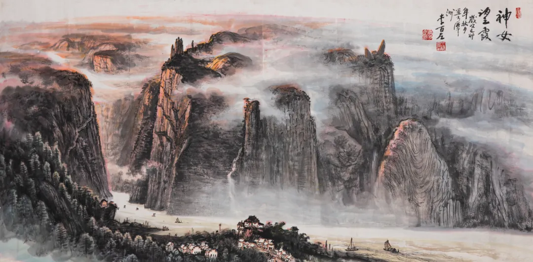 李百左《神女望霞》中国画 160cm×66cm 1999 年作