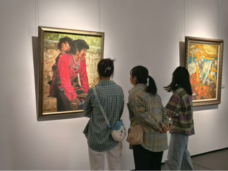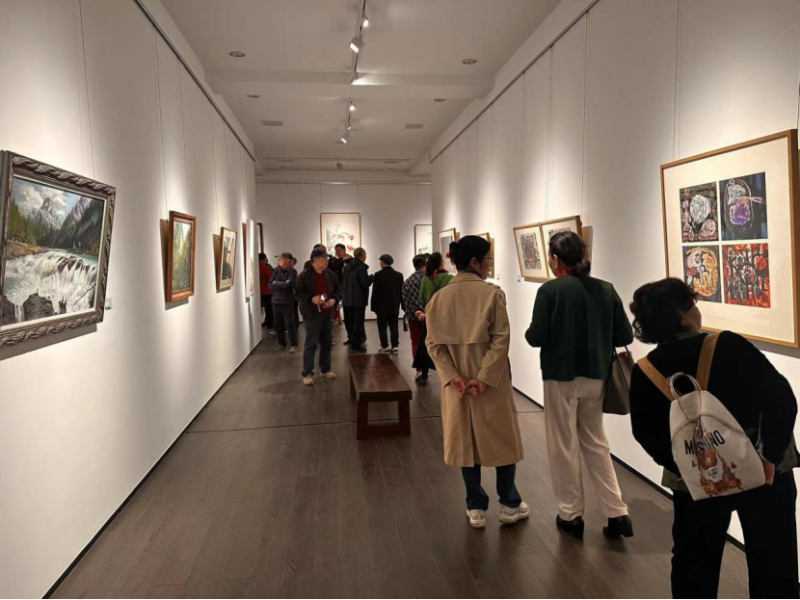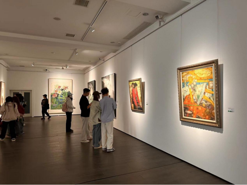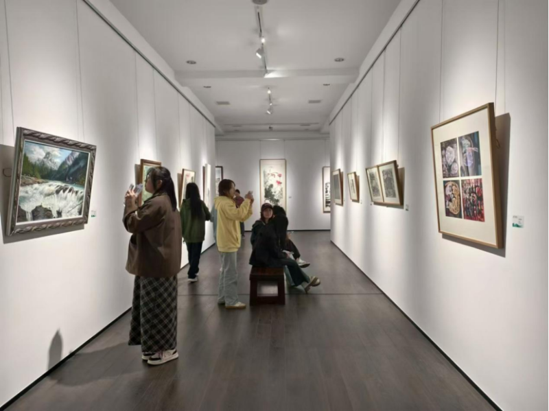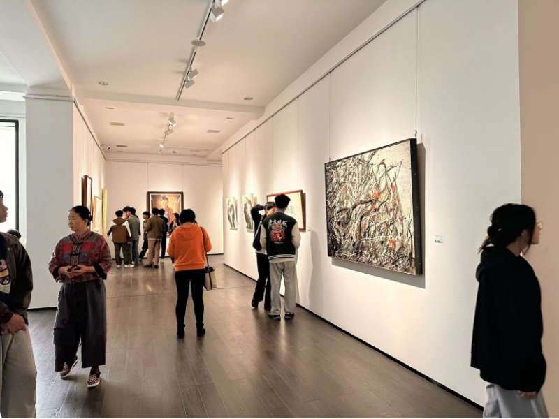 此次展览不仅是一场视觉盛宴,更是一次深刻的艺术传承与创新之旅的体验。展览汇聚了周令钊、陈白一、王憨山、易图境、黄铁山、聂南溪、谢丽芳、陈巽如、张方白、冯放、毛光辉等65位杰出校友近百件艺术作品。这些作品风格各异,形式多样,涵盖了多种艺术表现形式和创作风格,犹如一个绚丽多彩的艺术万花筒。在展览现场,同学们无一不被艺术家画作中所蕴含的艺术魅力和深厚的校友情怀深深吸引,每一幅作品都仿佛是一个神秘的艺术宝藏,散发着无尽的魅力,而那精湛绝伦的画技更是令人叹为观止